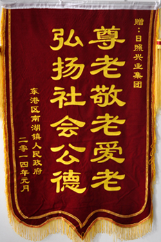 ·2014年元月,東港區(qū)南湖鎮(zhèn)人民政府贈(zèng)于興業(yè)集團(tuán)“尊老敬老愛(ài)老,弘揚(yáng)社會(huì)公德”錦旗
