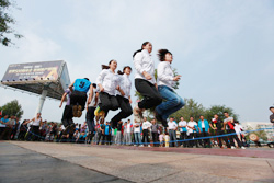 2006年5月1日,第二屆運動會在山海天花園門口舉辦,集團董事長丁杰、副總裁申作華在越野比賽中。 |