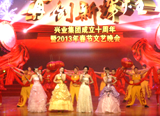 “再創(chuàng)新輝煌”興業(yè)集團(tuán)2013年春節(jié)聯(lián)歡晚會(huì)歷時(shí)2個(gè)多小時(shí),節(jié)目形式有歌舞、雜技、相聲、器樂(lè)、戲曲、情景朗誦等,內(nèi)容豐富,精彩紛呈;特別是央視著名主持人小尼和國(guó)家一級(jí)演員李玉剛等明星的加盟,讓整臺(tái)晚會(huì)無(wú)比璀璨;借助演播大廳極具現(xiàn)代化的舞美燈光效果驚艷四座,為我集團(tuán)成立十周年畫(huà)上濃墨重彩的一筆,充分展示了我集團(tuán)的企業(yè)實(shí)力,謳歌了興業(yè)人艱苦奮斗、團(tuán)結(jié)協(xié)作、拼搏進(jìn)取的創(chuàng)業(yè)精神和興業(yè)報(bào)國(guó)的高尚情懷,也為港城人民獻(xiàn)上了一場(chǎng)精彩、難忘、歡樂(lè)、美好的文化盛宴。 |