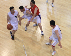 在比賽過程中各支代表隊(duì)都發(fā)揮出了極高的水平,為觀眾奉獻(xiàn)了一場場精彩的比賽。尤其在9月20日上午的交叉賽中,興業(yè)汽配代表隊(duì)與天泰鋼結(jié)構(gòu)代表隊(duì)勢均力敵,比賽中雙方比分交替上升,離結(jié)束還有不到20秒時(shí),汽配代表隊(duì)61:58領(lǐng)先3分并持有球權(quán),此時(shí)汽配隊(duì)員的心理感覺穩(wěn)操勝券,一個(gè)不經(jīng)意的走步把球權(quán)送給對(duì)手,離結(jié)束不到2秒,鋼構(gòu)中鋒馬沖順勢強(qiáng)攻,一記精準(zhǔn)的3分遠(yuǎn)投, 將比分追成61平,使比賽拖進(jìn)加時(shí)。在加時(shí)賽中,汽配中鋒崔冰連續(xù)中投得手,興業(yè)汽配代表隊(duì)最終以73:65的比分完勝鋼構(gòu),躋身本屆籃球比賽的冠、亞軍決賽。因?yàn)樘鞖庠颍?月20日下午的半決賽、決賽和驥翼組籃球表演賽改在日照一中室內(nèi)籃球場舉行。半決賽、決賽異常激烈,特別是在興發(fā)和汽配之間進(jìn)行的決賽,展示了興業(yè)集團(tuán)籃球的實(shí)力和水平,興發(fā)隊(duì)員們一次次嫻熟的配合,一個(gè)個(gè)精彩的扣籃,不時(shí)獲得現(xiàn)場觀眾的陣陣喝彩和掌聲。集團(tuán)驥翼隊(duì)與興發(fā)驥翼隊(duì)的籃球表演賽同樣上演了群雄大戰(zhàn),集團(tuán)驥翼隊(duì)在王建國總經(jīng)理帶領(lǐng)下,抗拒了體力不足,堅(jiān)持打滿全場,最終以44:44的比分和興發(fā)驥翼隊(duì)握手言和(因?qū)俦硌葙惒辉偌訒r(shí)),也宣告興業(yè)集團(tuán)第五屆職工運(yùn)動(dòng)會(huì)籃球比賽鳴金收兵。